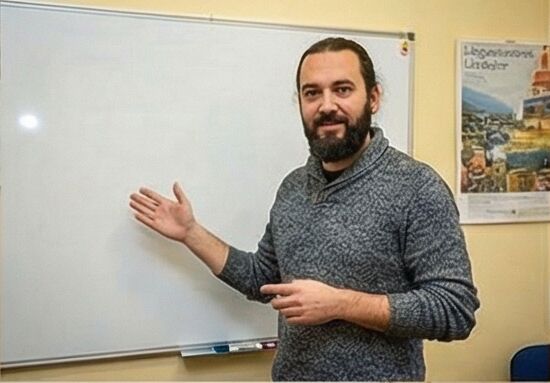Lektor językowy, który stawia na komunikację i przełamywanie bariery mówienia. Lubi jasno tłumaczyć nawet trudne zagadnienia.